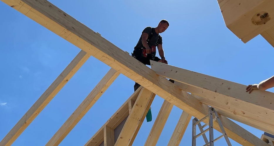 Wir sind die Zimmerei in der Region. Große sowie kleine Bauprojekte setzen wir zuverlässig und zeitnah um. Wir investieren nicht nur in die moderne Fertigungstechnik sondern geben auch alles für unser top-ausgebildetes Zimmerer-Team. Durch dieses perfekte Zusammenspiel können wir die komplette Palette an Leistungen abbilden wie zum Beispiel den Holzhaus- und Objektbau. Hier können wir problemlos von der Planung bis zum fertigen Bau alles übernehmen. Energetische Dachsanierungen, Aufstockungen sowie Anbauten, Gauben, Dachfenster, uvm. sind ebenso in unserem Programm. Mit Hilfe unserer Abbundanlage können wir alle Elemente individuell vorfertigen und beliefern so nicht nur private Bauherren*innen sondern auch Firmen, Komunen und eine vielzahl von Zimmereien in der Umgebung.