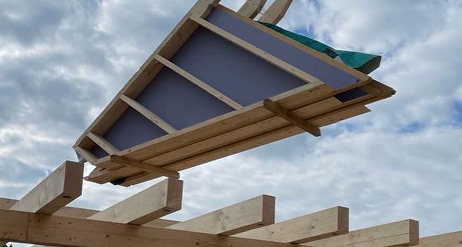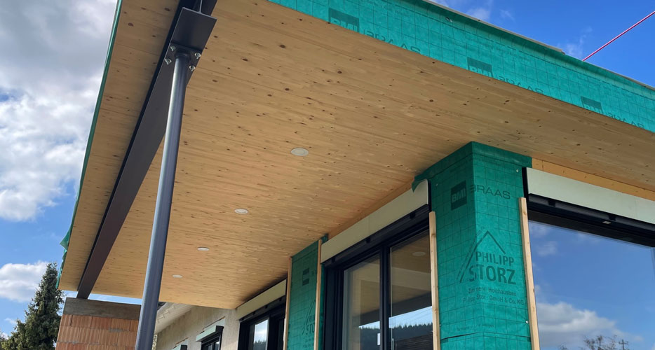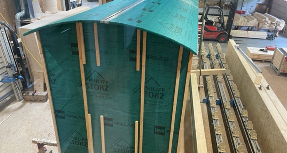 Beim Abbund bzw. der Vorfertigung unter Dach sind maßgenaue Elemente oder spezielle Holzrahmen- bauelemente garantiert.